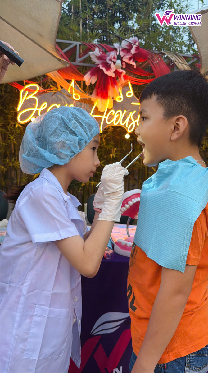 Một điểm đặc biệt của workshop chính là sự kết hợp giữa học tiếng Anh và giáo dục kỹ năng sống. Các con được giải đáp nhiều thắc mắc xoay quanh việc chăm sóc răng miệng, hiểu hơn về tầm quan trọng của nụ cười và cách giữ gìn sức khỏe cá nhân từ sớm.