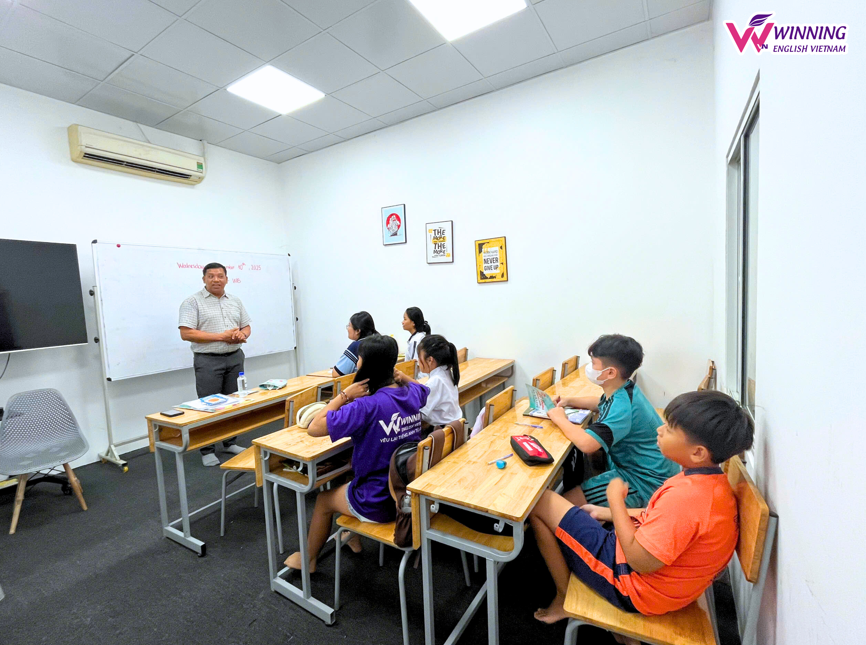 Tại Winning English, mỗi buổi học đều tích hợp nội dung luyện phát âm bài bản. Trẻ được tiếp xúc với giáo viên bản ngữ để nghe chuẩn âm, đồng thời có giáo viên Việt Nam hỗ trợ chỉnh sửa chi tiết về khẩu hình, trọng âm và cách nối âm phù hợp với từng độ tuổi. Nhờ đó, trẻ không chỉ phát âm đúng mà còn hiểu và sử dụng tiếng Anh một cách tự nhiên.